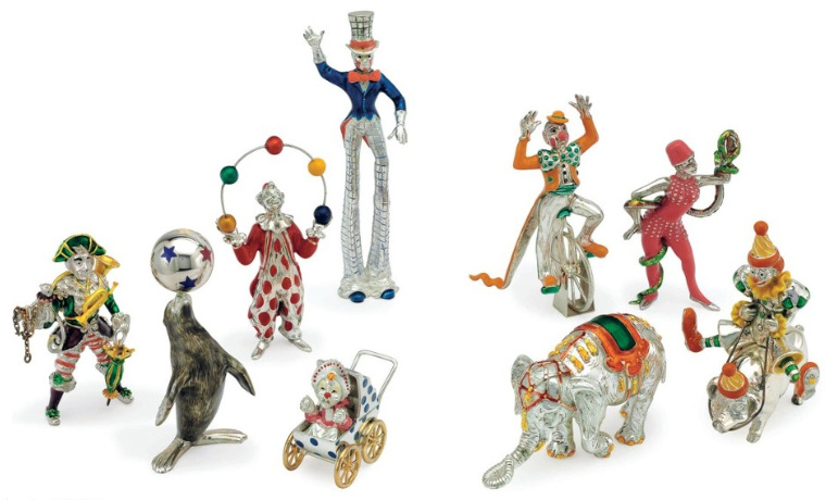 كما قدمت الدار معروضات أخرى منها بروشات تاريخية كانت ملك وجوه المجتمع الاوروبي في الثلاثينات وأساور ماس فاخرة والعديد من المقتنيات مثل مجموعة لاعبي السيرك من الذهب الأبيض وألوان الإناميل والأحجار الكريمة التي حملت توقيع علامة تيفاني.