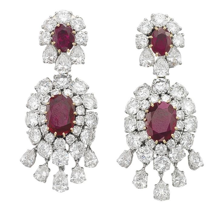 كما عرضت كريستيز أقراط تاريخية من علامة فان كليف أند أربلز من الماس والذهب الأبيض والياقوت وهي تتمتع بتصميم ملكي فريد.