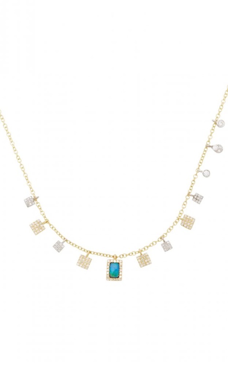كما نختار من علامة Foundrae سلسلة من الذهب الأصفر بتصميم من الزهور الرقيقة وحبات الماس، كما نختار من علامة ميرا تي Meira T سلسلة ناعمة من الذهب الأصفر والماس وحجر من الأوبال.