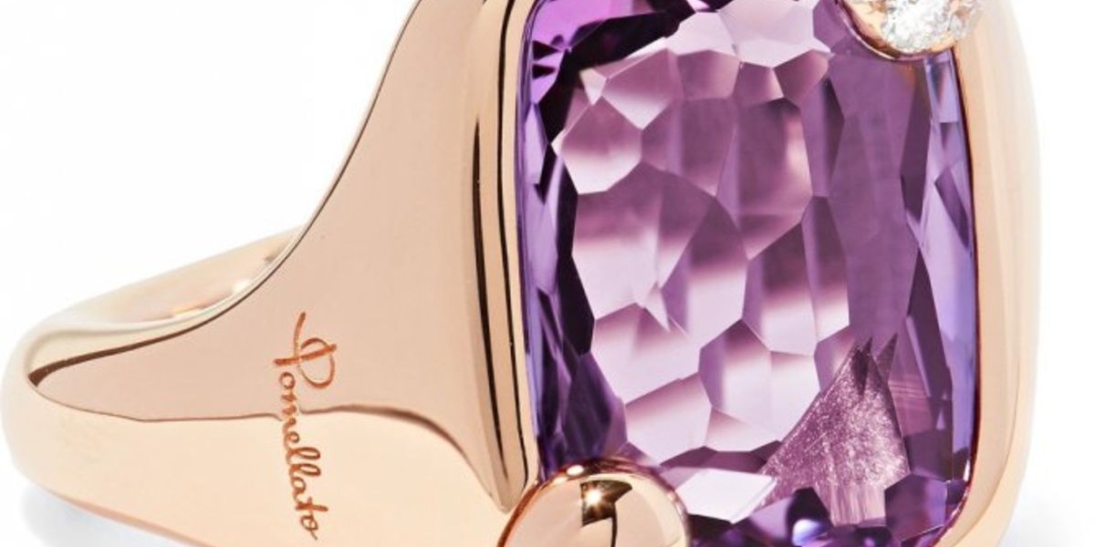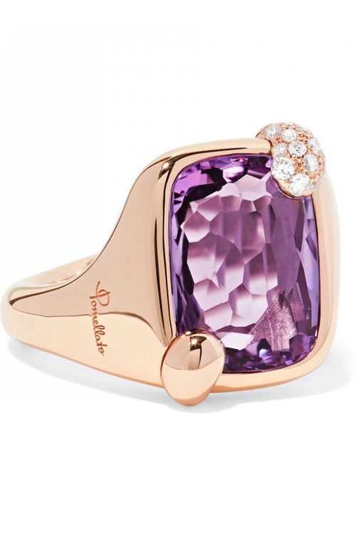 من علامة بوميلاتو نختار خاتم كوكتيل يتألق بالأنوثة في جمال الذهب الوردي والماس وحجر الجمشت.