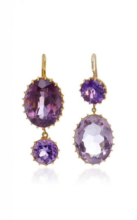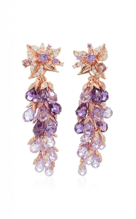 من علامة ماري هيلين دي تايلاك نختار أقراط راقية بتصميم من الذهب الوردي مع أحجار الجمشت المستديرة.