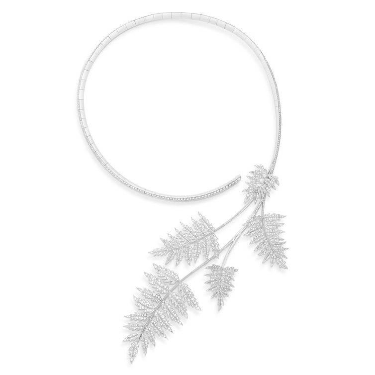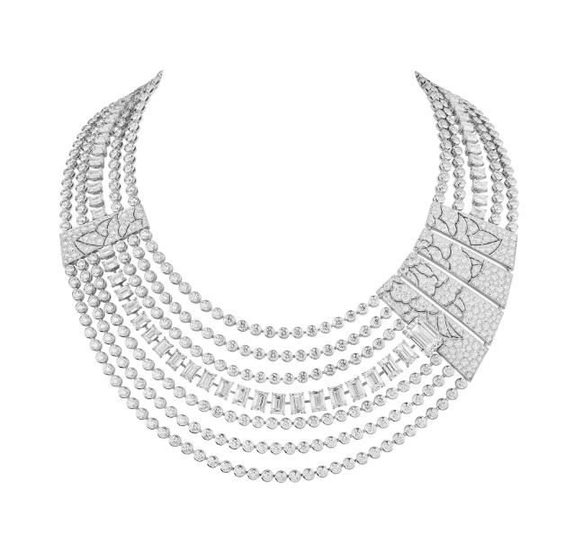 استوحت شانيل من ستائر الكورمونديل تصميم هذه القلادة الرائعة، حيثي كانت كوكو شانيل من عاشقات لهذا الديكور، وقد صممت القلادة من الذهب الأبيض ورصفت بقطع الماس البراقة.
