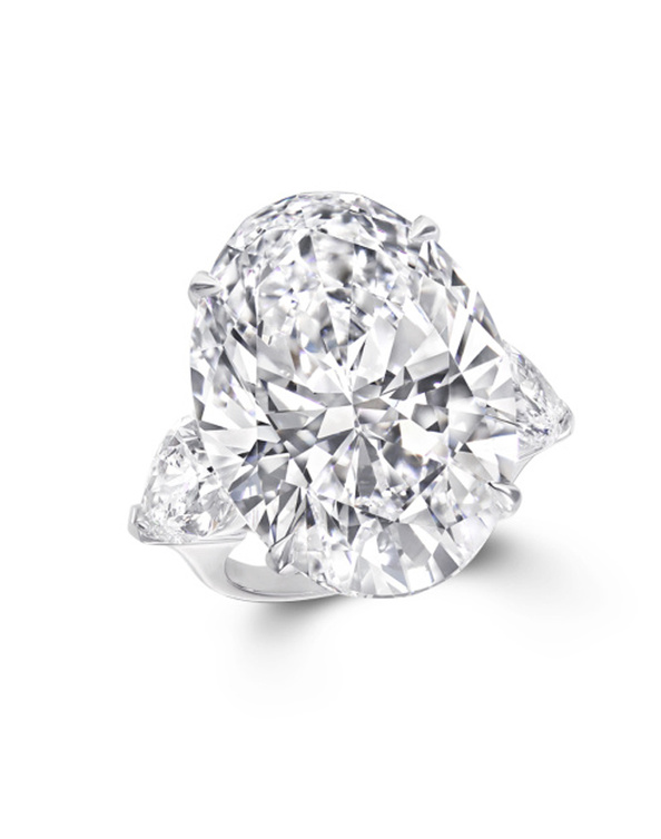 ألقي أناملك في أفخم سهراتك بخاتم غراف الذي ينبض ألقا وبريقا بقطعة رائعة من الماس بقصة بيضاوية، مع قطعتين من الماس بقصة الكمثرى.