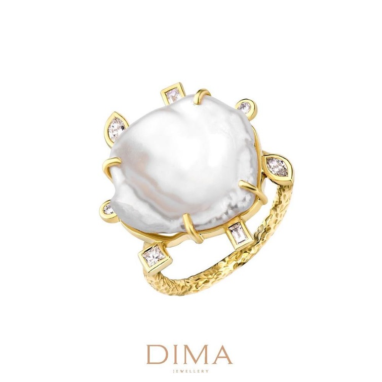 حيث اختارت أقراط الماس المتدلية مع اللؤلؤ الباروكي Baroque مع خاتم ماسيّ باهر.