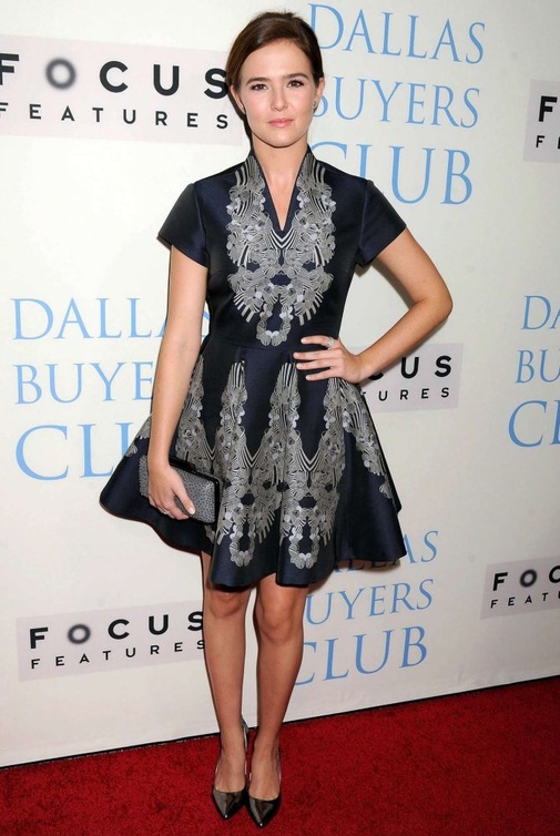 الشابة الجميلة Zoey Deutch ذات الثمانية عشر ربيعاً، اختارت فستاناً مميزاً آخر من تصميم Diane Von Furstenberg، له لون رمادي هادئ، ونقوش فضية غير لامعة، عند حضورها افتتاح فيلم Dallas Buyers Club بكاليفورنيا.