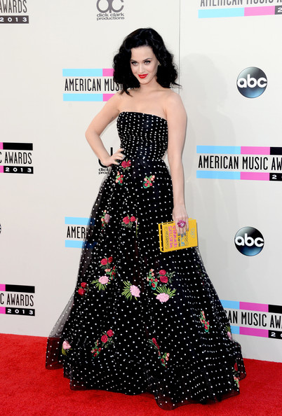 النجمة Katy Perry تألقت بفستان أسود مطبوع بالورود، من تصميم Oscar de la Renta.