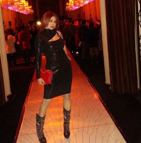 وتميّز الفستان بقصته الجريئة والمميزة عند الصدر، فيما نسقت عليه بوطا جلديا طويلا مطرزا بالذهبي مع حقيبة باللون الأحمر جاءت متماشية مع لون شعرها الأحمر، فبدت هيقاء بغاية الأناقة والجاذبية.