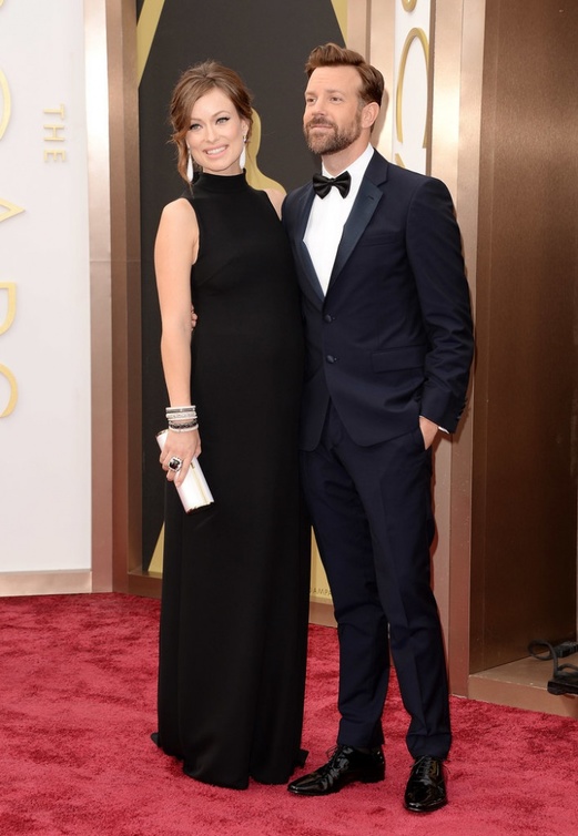 أما الجميلة Olivia Wilde فبدت شديدة السعادة هي وزوجها Jason Sudeikis الذي أخذ يلتقط لها الصور على السجادة الحمراء ببطنها المنفوخ الذي يبدو واضحاً في فستان Valentino الأسود.