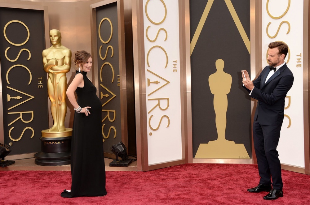 حالة وحيدة تعشق فيها المرأة صورتها وهي بدينة ولها بروز كبير عند بطنها، هذه الحالة النادرة تكون فقط عندما تنتظر طفلاً، فتظل كل يوم تقيس حجم الانتفاخ هل زاد أم لا، لتعرف إن كان طفلها يكبر جيداً أم أنه طفل صغير الحجم، هذا الوضع لا يفرق بين سيدات عاديات أو نجمات شهيرات، فالمرأة هي المرأة، والأمومة هي الأمومة، لا يغيرها النجاح أو الشهرة، وحفل الأوسكار أحد الأدلة الدائمة على هذا الأمر، ففي كل عام نجد فاتنات حوامل، يخطرن على السجادة الحمراء بكل فخر وسعادة ببطونهن المنفوخة، وهذا العام اجتمعت ثلاث نجمات حوامل على السجادة الحمراء بثقة وهدوء.