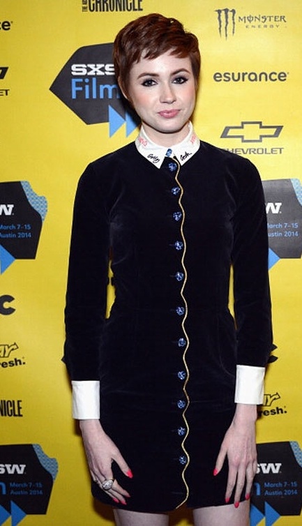 الممثلة البريطانية Karen Gillan اختارت أيضاً أحد إبداعات House of Holland في فستان أسود قصير من المخمل، بياقات بيضاء منقوشة، وأساور أكمام بيضاء، وصف أزرار كحلية بطول الفستان، أثناء حضورها مهرجان the 2014 SXSW Music Film + Interactive Festival في تكساس.