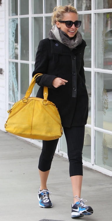 كل يوم تلتقط عدسات المصورين صوراً لعشرات المشهورات لحظة خروجهن من النادي الرياضي، حيث يكن بملابس الرياضة و في الغالب تتألف من سروال مطاطي قصير، جاكيت قطني، حذاء جري، ودائماً حقيبة من أحد أهم دور الأزياء وغالباَ من Chanel ،Givenchy، وLouis Vuitton، أما Kim Kardashian فقد اختارت حمل حقيبتها الـBirkin من Hermes الى الرياضة.