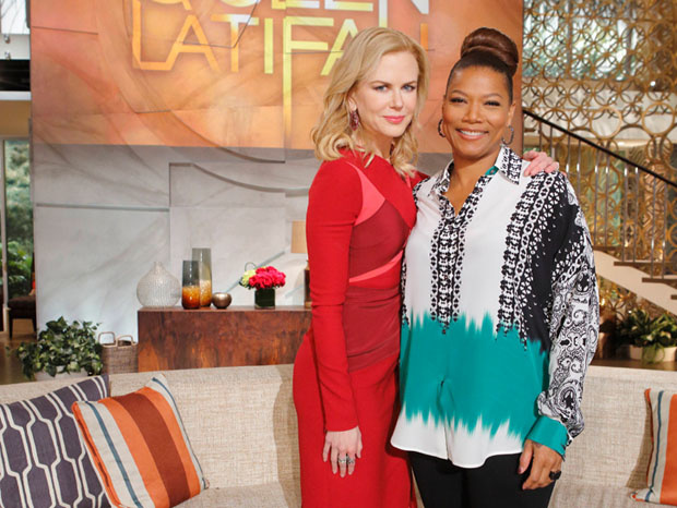 الفاتنة دوماً Nicole Kidman بدت مميزة –كعادتها- أثناء ظهورها في برنامج The Queen Latifah Show، بفستان Peter Pilotto الأحمر ذي الفتحة الجانبية، والمزين بتشكيلات هندسية بدرجات مختلفة من اللون نفسه.