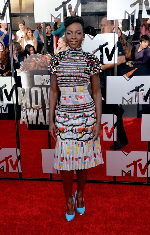 Lupita Nyongo: اختارت فستاناً ملوناً من Chanel وهذه أول اطلالة غير موفقة لـ Lupita حيث أن الفستان بدا فوضوياً عليها خاصة مع الحذاء الأزرق وتسريحة الشعر الغريبة التي اعتمدتها.