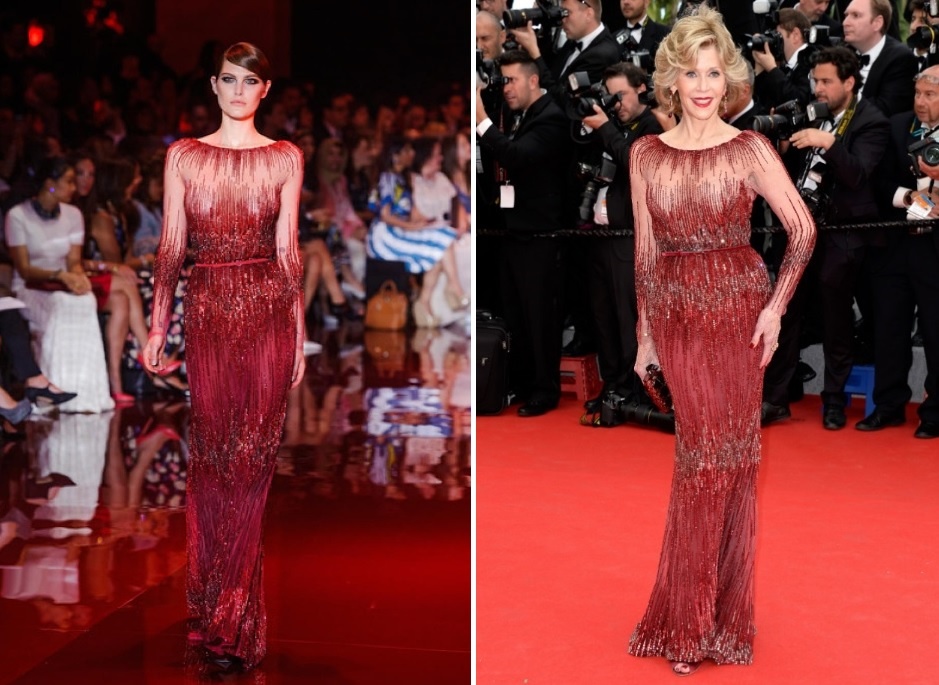 أطلت النجمة المخضرمة جاين فوندا Jane Fonda في الحفل الافتتاحي لمهرجان كان السينمائي 2014 الأربعاء بفستان ذكّر بإطلالة الممثلة الشهيرة والناشطة الإنسانية آنجلينا جولي Angelina Jolie في حفل توزيع جوائز الأوسكار 2014 قبل أكثر من 3 أشهر.