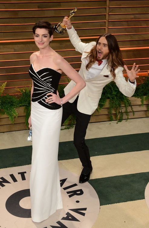 جاريد ليتو: وقام بالوقف خلف الممثلة آن هاثاواي في حفل Vanity Fair والذي أقيم بعد حفل الأوسكار لعام 2014.