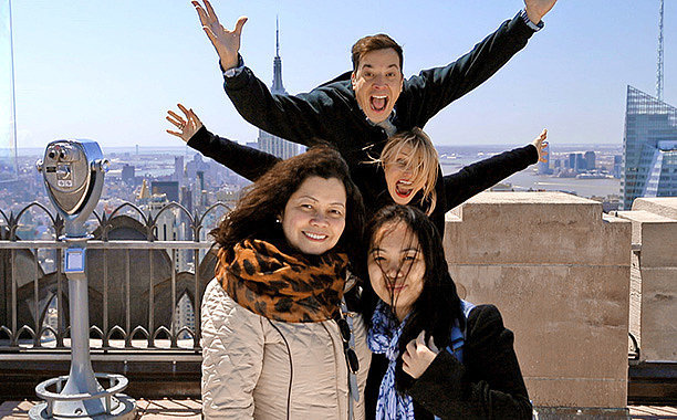 كاميرون دياز وجيمي فالون: قاما بالوقوف خلف سائحين في مدينة نيويورك بشكل متعمد وكان ذلك في شهر أبريل لعام 2014.