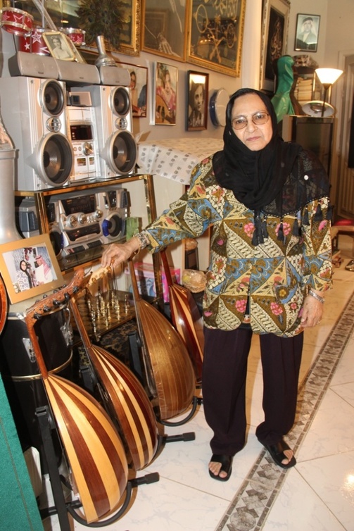 وعندما سألها حسن سراج عن متحفها من الأعواد والآلات الموسيقية المختلفة والذي  استطعنا التقاط صورة لها مع اللات العود قالت :
