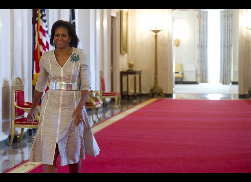 خطوة خطوة تخلت سيدة أميركا الأولى ميشيل أوباما عن الكثير من ملامح اطلالاتها القديمة، لتتوج منذ منتصف الفترة الرئاسية الأولى على عرش أكثر المشاهير أناقة في بلادها، غيرت قصة شعرها، وعدلت كثيرا في اختياراتها لأزيائها، ولكنها لم تتخل أبدا عن البروش الذي يزين يمين السترة أحيانا أو يتألق على بديلا للحزام، أو يورق على شعرها كزهرة تتفتح كل يوم.