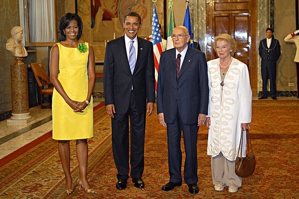 الأزهار بكل الألوان تبقى اختيار ميشيل في المناسبات العامة، بعضها متوج بالماس، والأخر بالأحجار السوداء، والاحجار الحمراء تناسب دوما طلتها الإنسانية، واللمسة الصفراء على الأزهار الكبيرة المتفتحة تلائم مشاعر الغيرة من نظرات زوجها المتكررة للجميلات.