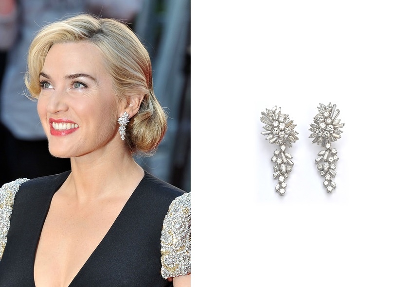 كما نعرض لكم أيضاً أقراطاً ماسية جميلة من تصميم Goode & Sons ارتدتها كيت في إطلاق النسخة ثلاثية الأبعاد من فيلم Titanic (Titanic 3D) في لندن. وتظهر أٌقراطDiamond Day & Night earrings الماسية على شكل عنقود من العنب ويعود تصميمها إلى عام 1950م.