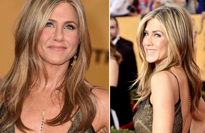 أما نجمة البساطة مثل عادتها فهي الممثلة الأمريكية جينيفر آنيستون التي اختارت أن ترتدي أقراطاً من فريد لايتون Fred Leighton مع سلسلة طويلة من الذهب تتدلى على صدرها من الأمام وتحتضن جذعها الرشيق من الخلف من علامة Amrit ويبدو أن الممثلة الجميلة تتفاءل بهذه القطعة حيث ارتدتها أيضاً قبل عدة أسابيع في حفل Critic Choice Awards عندما صعقت جمهورها ونقاد الموضة بإطلالتها المختلفة مرتدية مغرية بذلة بلون أحمر قانٍ!