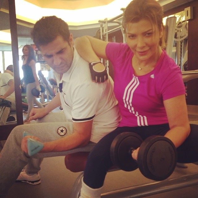 شقيق اصالة وزوجها حيث كشفت الفنانة السورية أصالة عن جزء من تفاصيل يومياتها الرياضية على صفحتها "الفايسبوك" مستعرضة قوتها البدنية وهي تمسك بيدها وزناً من الحديد في احدى صالات النوادي الرياضية.