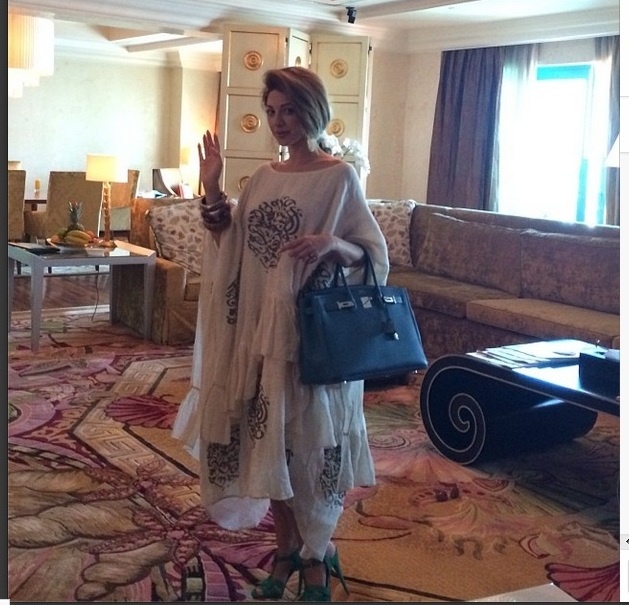 كما نشرت ميريام صورة لها بإطلالة غريبة جدا حيث ارتدت عباءة ذات طبقات عدة خلال تواجدها بأحدد فنادق دبي.
