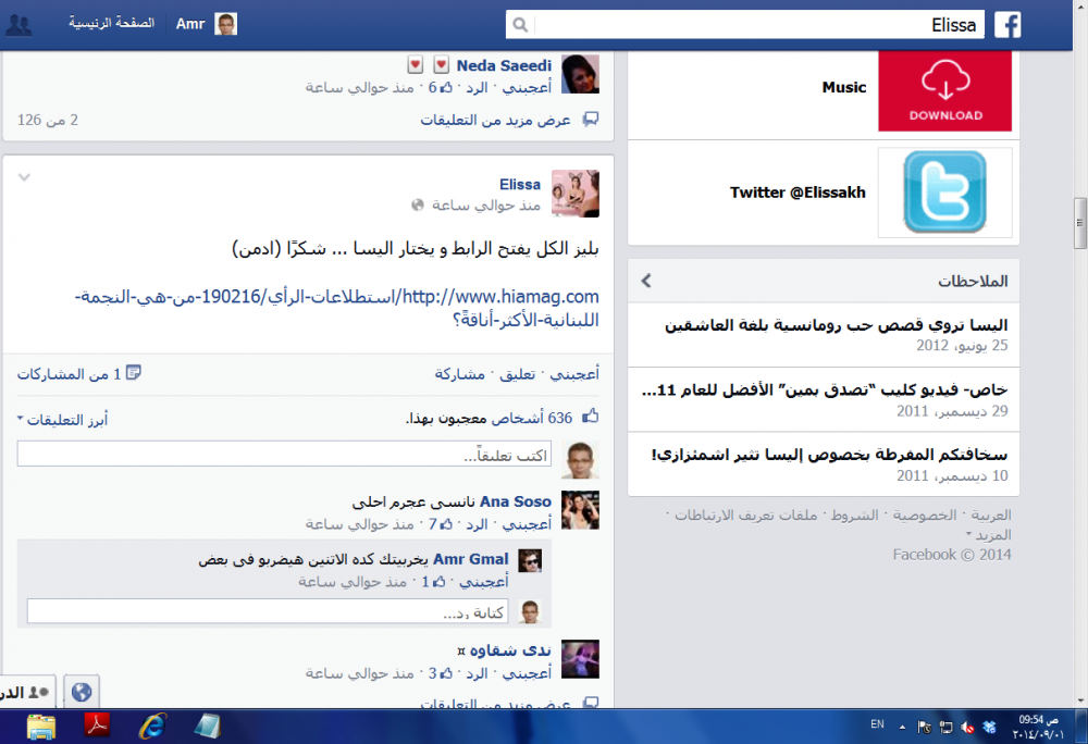 توجهت النجمة اللبنانية اليسا بطلب لكل متابعيها على حسابها الرسمي بموقع "فيسبوك"، لزيارة موقع مجلة "هي" لدعمها في المنافسة القوية باستطلاع المجلة حول النجمة اللبنانية الأكثر أناقة، ويضم زميلتها المتألقة نانسى عجرم، والنجمة نجوى كرم وملكة المسرح ميريام فارس.