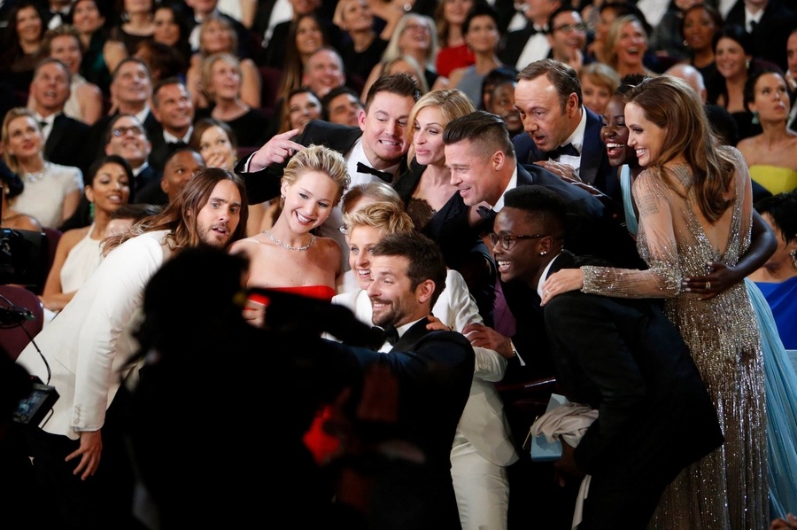 1-أشهر سيلفى فى التاريخ هو اللقطة التاريخية لمقدمة حفل توزيع جوائز الأوسكار إلين ديجريس التى جمعت للمرة الأولى براد بيت وأنجلينا جولى  وكيفين سبيسى وجوليا روبرتس وجينيفر لورانس والأيقونة ميريل ستريب فى سيلفى واحد تسبب إعادة تغريدة لثلاثة ملايين مرة فى عطل مؤقت لموقع تويتر.