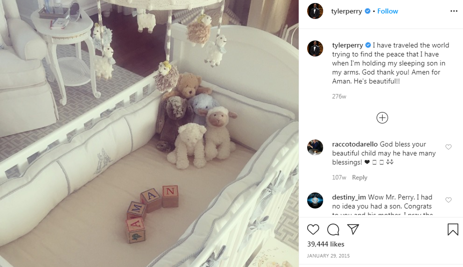 شارك تايلر في صورة على الانستقرام، غرفة الأطفال التي استخدمها سابقًا لابنه أمان " Aman"، ويغلب عليها اللونين الأزرق والأبيض مع أرضيات خشبية وجدران بيضاء، كما أن هناك سرير للأطفال أبيض وكرسي بذراعين وطاولة جانبية.