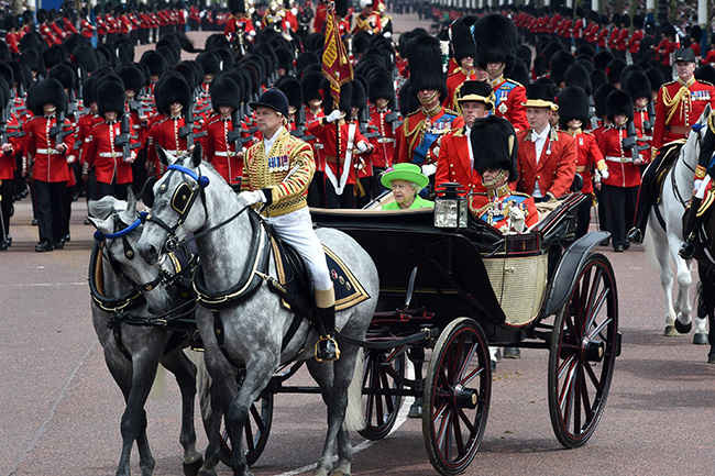 يقام احتفال " Trooping the Colour"، في يوم السبت الثاني من شهر يونيو كل عام، للاحتفال بعيد ميلاد الملكة إليزابيث الثانية.
