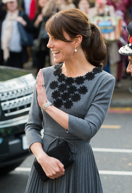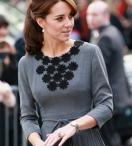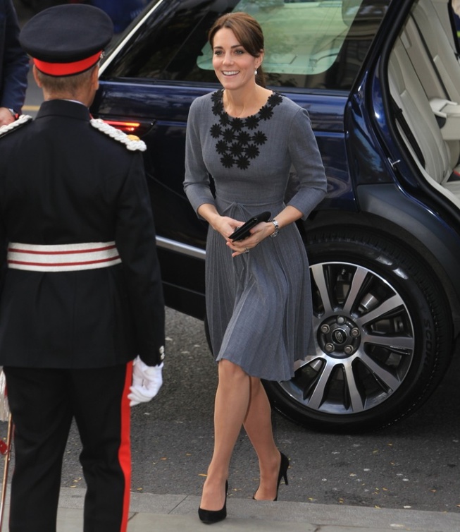 بعد أن حضرت كيت دوقة كمبريدج العرض الأول لفيلم " Spectre" في لندن بصحبة زوجها الأمير وليام وشقيقه الأمير هاري في يوم الإثنين 26 أكتوبر، قامت كيت في اليوم التالي بالذهاب إلى ارتباطين رسميين بمفردها في لندن.