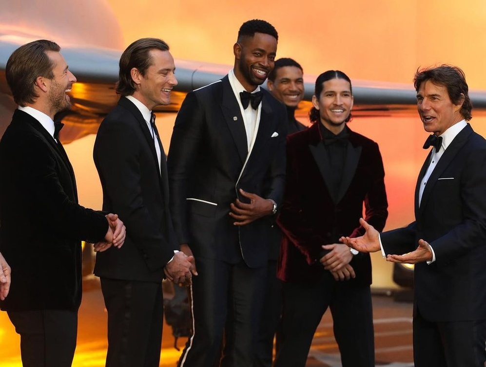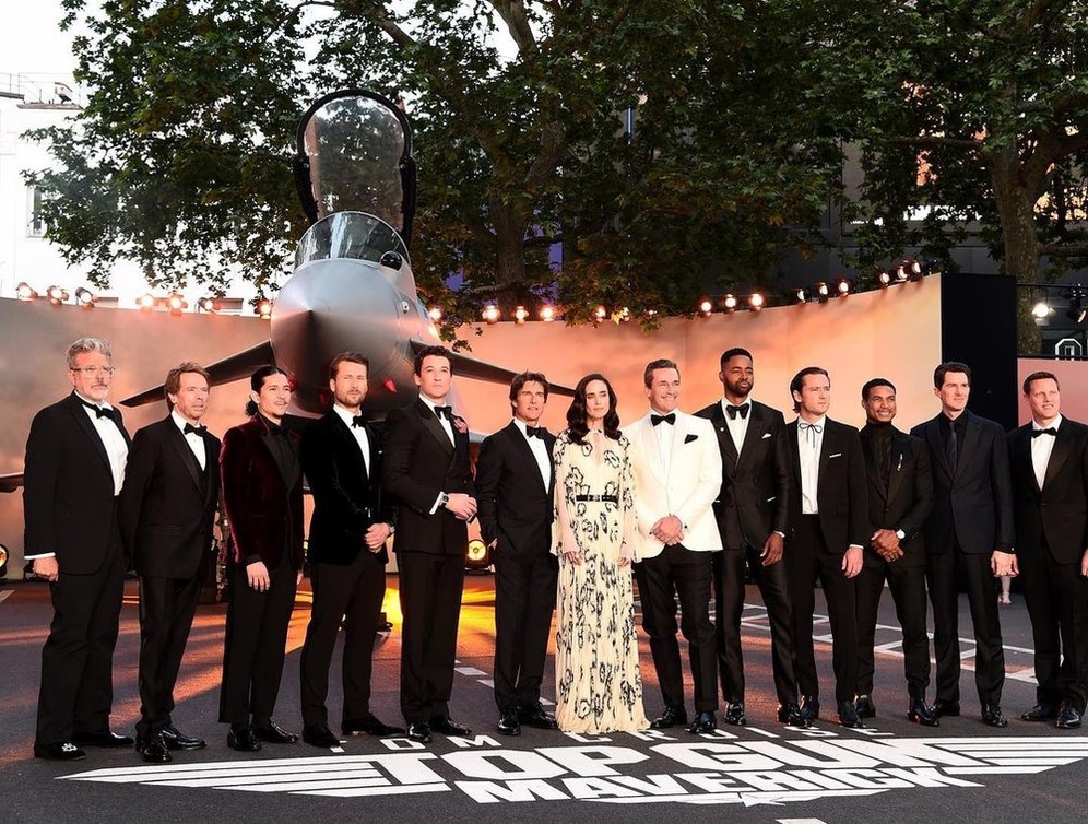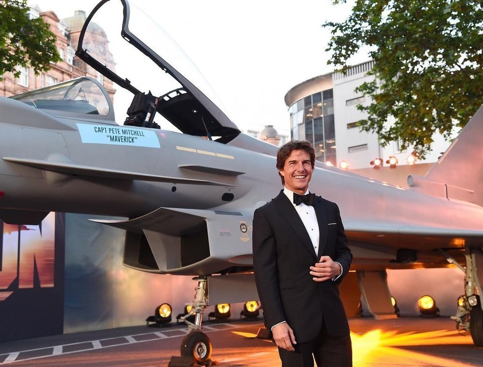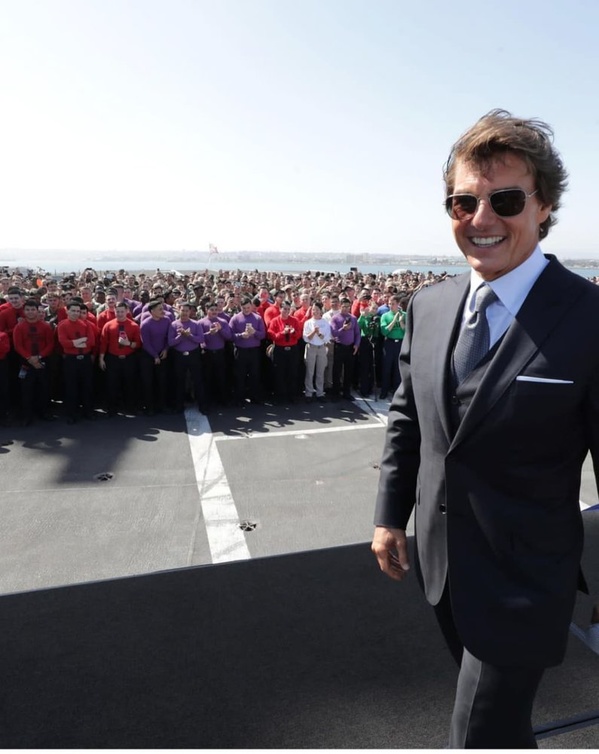 في بداية شهر مايو/ آيار، تألق توم كروز في العرض الخاص لفيلم "Top Gun: Maverick" بمدينة سان دييغو بولاية كاليفورنيا الأمريكية، وشهد الحدث حضورًا مميزًا حيث وصل النجم العالمي إلى العرض في طائرة هليكوبتر من طراز Airbus، وابتسم توم كروز، الذي كان يرتدي نظارة أمريكان أوبتيكال، وهو يخرج من الطائرة ويمشي على طول المدرج، مرتديًا سترة بدلة بريوني البحرية المكونة من ثلاث قطع، في حين كانت المروحية في الخلف تحمل عنوان الفيلم بالإضافة إلى اسم توم كروز بأحرف كبيرة.