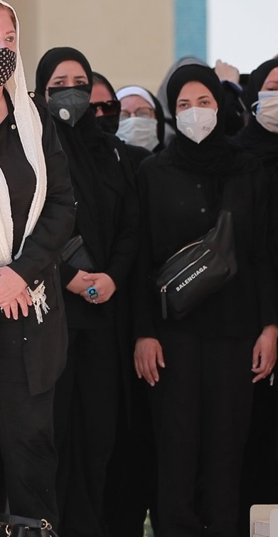 دنيا سمير غانم وإيمي سمير غانم ظهرتا في الصور المنتشرة الخاصة بجنازة والدتهما، وهما في حالة صدمة وحزن على رحيل أقرب الناس إليهما، وارتسمت على وجههما ملامح التيه والانكسار، ليتكرر نفس المشهد الذي حدث مسبقًا في جنازة والدهما.