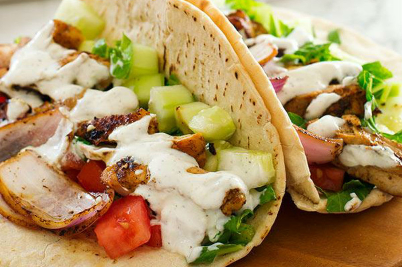 شاورما الدجاج بصلصة اللبن الزبادي و الخيار و الطماطم من الوصفات المختلفة لتحضير سندويش شاورما لذيذ ، حيث يتبل لحم صدر الدجاج لليلة كاملة ثم يشوى و يقدم مع صلصة اللبن الزبادي بالثوم و الليمون و الخضروات المقرمشة .