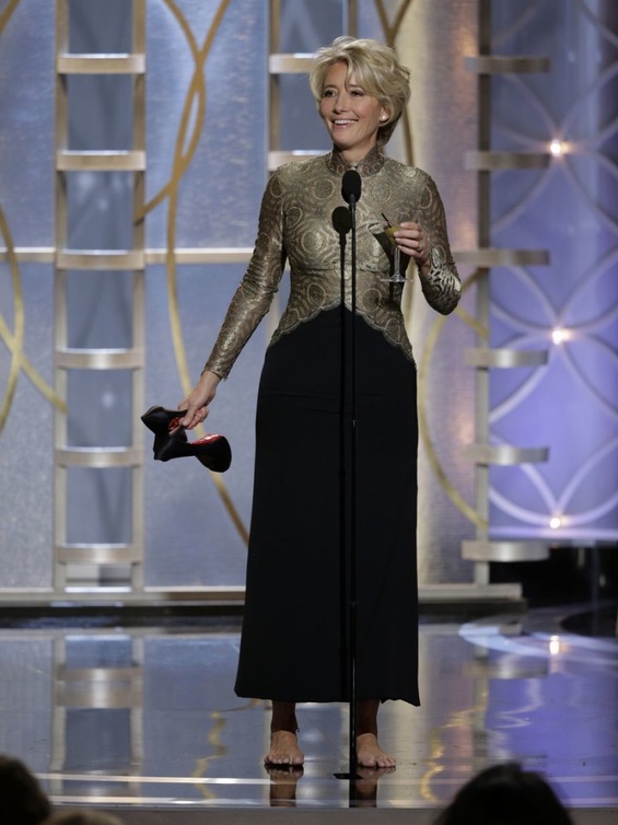 الممثلة البريطانية الشهيرة ايما تومسون ظهرت حافية القدمين بينما تمسك حذائها الانيق من ماركة "Louboutin" اثناء قيامها بتقديم جائزة افضل نص سينمائي في حفل توزيع جوائز جولدن جلوب في دورته الواحدة والسبعين، وقتها قالت تومسون مازحة أن اللون الأحمر في الحذاء هو دماؤها التي سالت بسبب ارتدائها لذلك الحذاء المؤلم للقدمين.