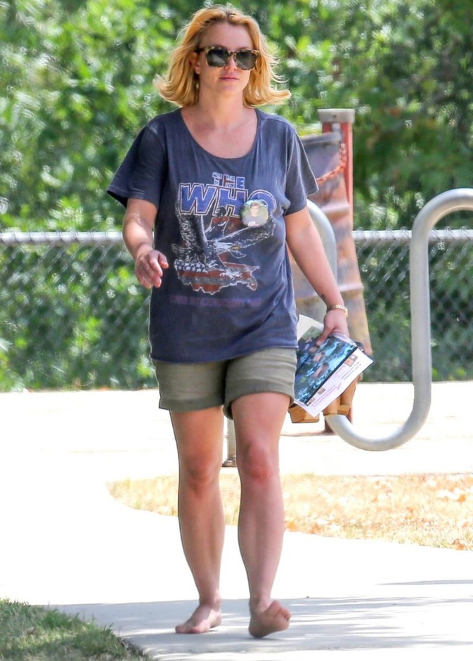 جدول اعمال النجمة بريتني سبيرز حافل للغاية ومليء بالحفلات الموسيقية التي تقوم باحيائها والحفلات الفنية التي تقوم بحضورها وجميعها مناسبات تضطر فيها لارتداء الملابس الضيقة الانيقة والاحذية الانيقة ذات الكعب العالي، وربما يكون هذا ما دفع بريتني لاختيار الظهور في اطلالات كاجوال بسيطة في حياتها اليومية العادية وكلما اتيحت لها فرصة القيام بذلك، وهذا ما قامت به بالفعل في يوم 30 مايو عام 2015 عندما ظهرت حافية القدمين وترتدي شورت وشيرت.