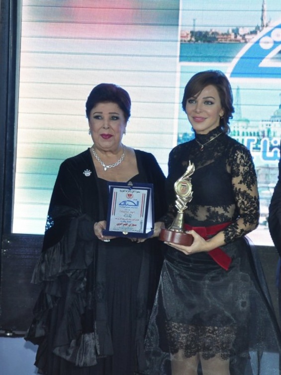 حرصت الفنانة سوزان نجم الدين على حضور فعاليات مهرجان الدراما العربية فى نسخته الثالثة بمدينة بورسعيد المصرية، لتتسلم درع تكريمها عن مجمل أعمالها الفنية.