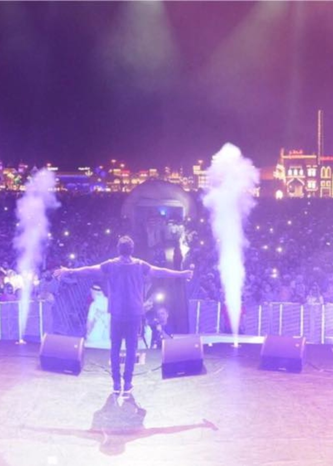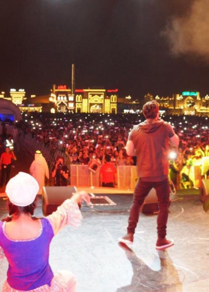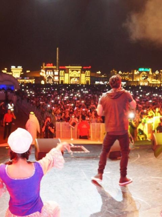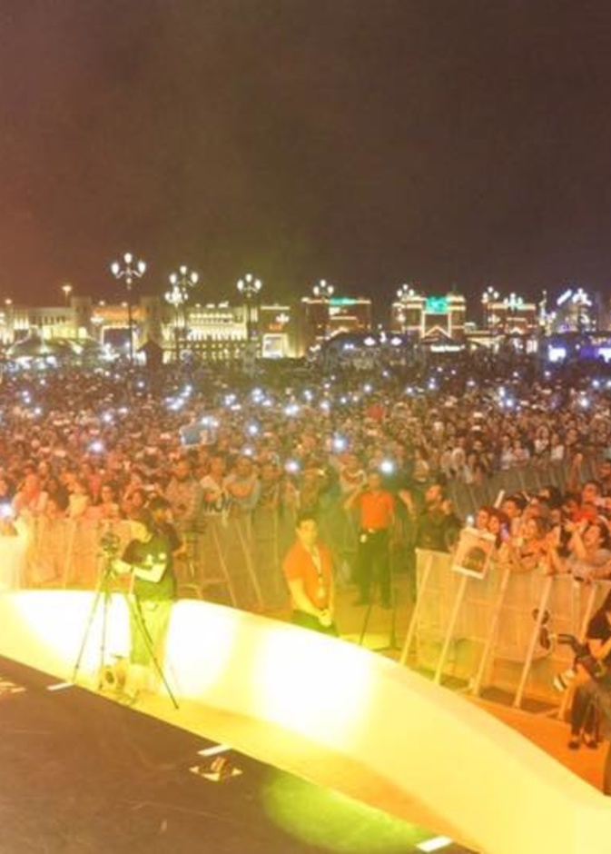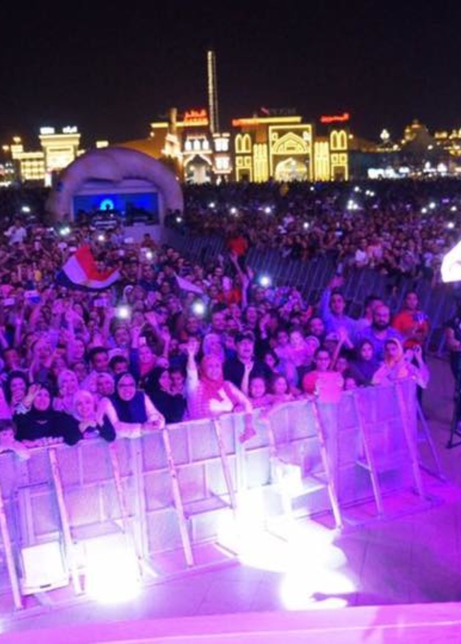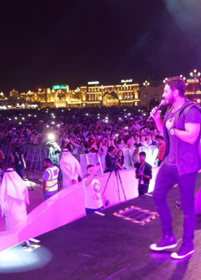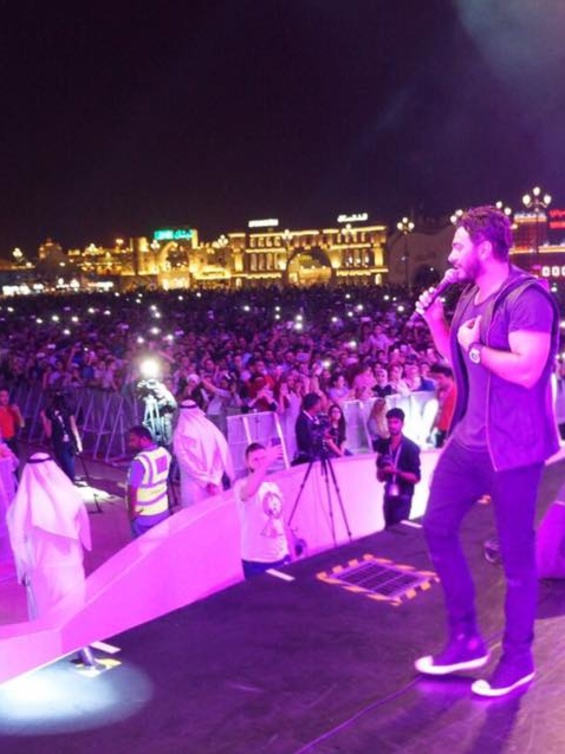 أحيا المطرب تامر حسني حفل غنائى ضخم داخل القرية العالمية بدبي تحت إشراف الجناج المصري.، وقدم العديد من أشهر أغانياته الجديدة والقديمة بالإضافة إلى أغانى ألبومه الأخير"عمرى ابتدا"، وسط حضور ما يقرب من 100 الف شخص.