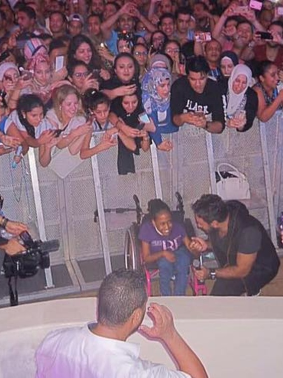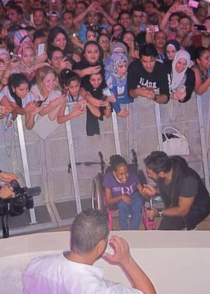 وفوجىء جمهور الحفل بترك تامر حسني للمسرح ونزوله إلى الجماهير، ليكتشفوا من خلال شاشات العرض المتواجدة بالحفل، وجود إحدى معجبات تامر حسني من ذوى الإحتياجات الخاصة وهو ما دفعه لترك المسرح والنزول إليها لإلتقاط الصور التذكارية معها.