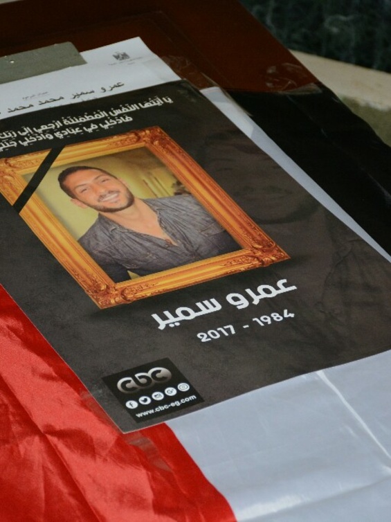 شاهدوا بالصور اللقطات الأولى من جنازة عمرو سمير وأسرته تضع صورته على النعش