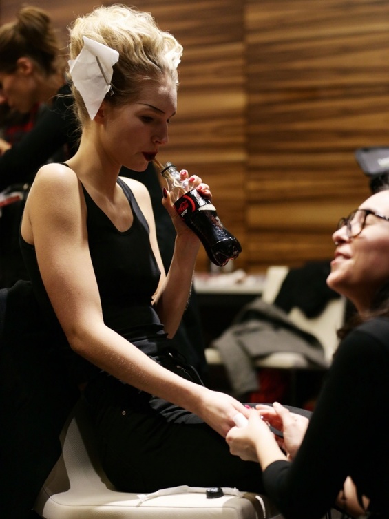 لدى مشاهدتنا لعارضات الأزياء وهن يختلن على منصات العروض، نلمح دقة التفاصيل في شعرهن ومكياجهن، وملابسهن، وما يجهله البعض هو وجود خلية نحل تدار بالكامل خلف الكواليس، حيث يعمل على كل عارضة أكثر من مصفف شعر وخبير تجميل، بينما يتواجد بعض خبراء الأزياء لتصحيح أي عيوب تطرأ على الفساتين، وأثناء هذا كله تنشغل العارضات إما بتناول الطعام، والتقاط الصور، والتحدث عبر الهاتف.