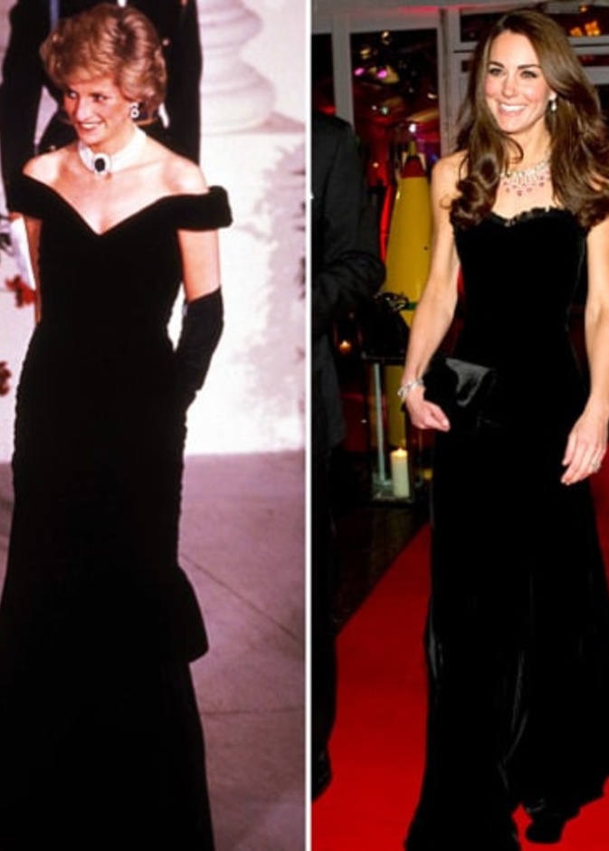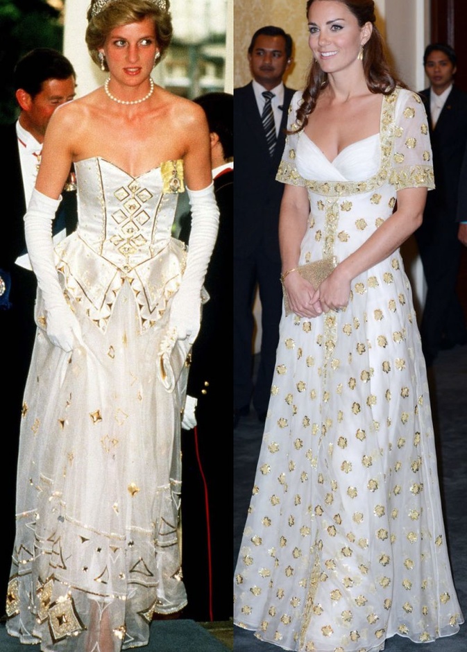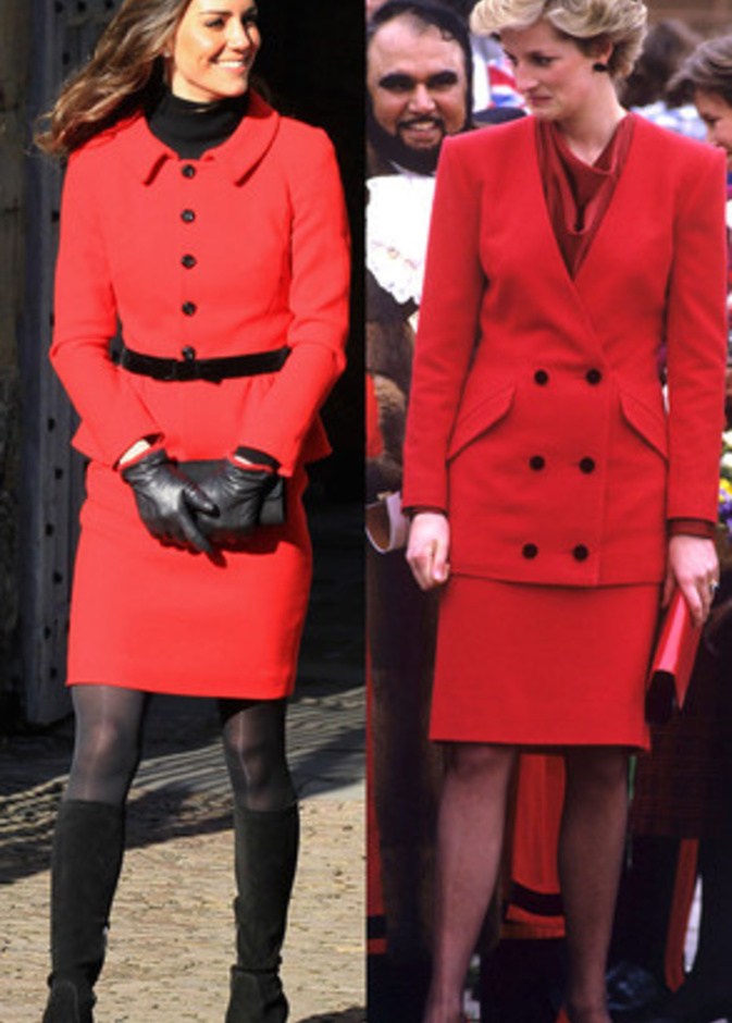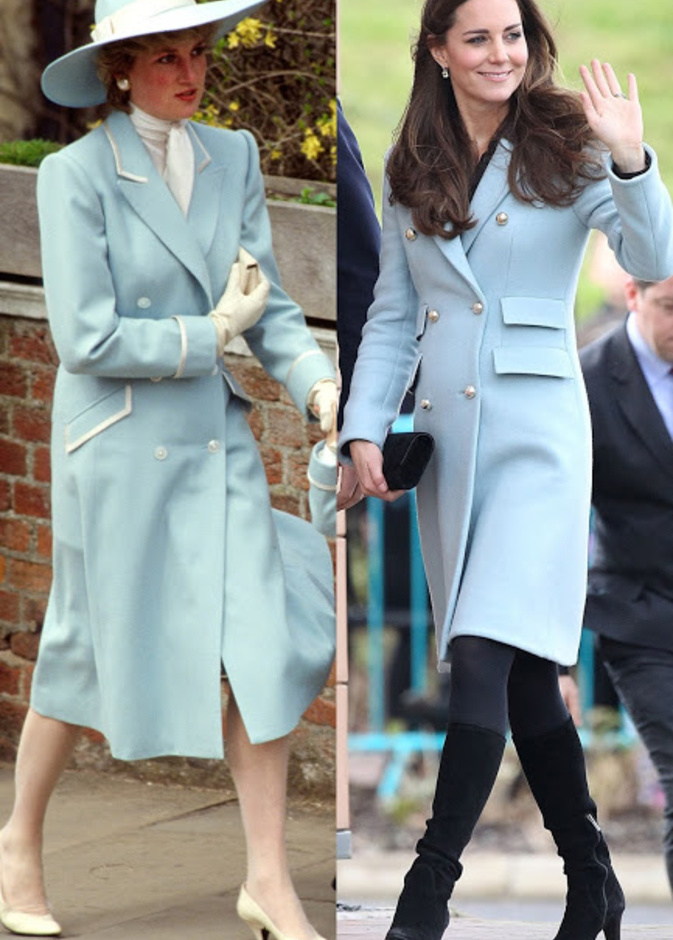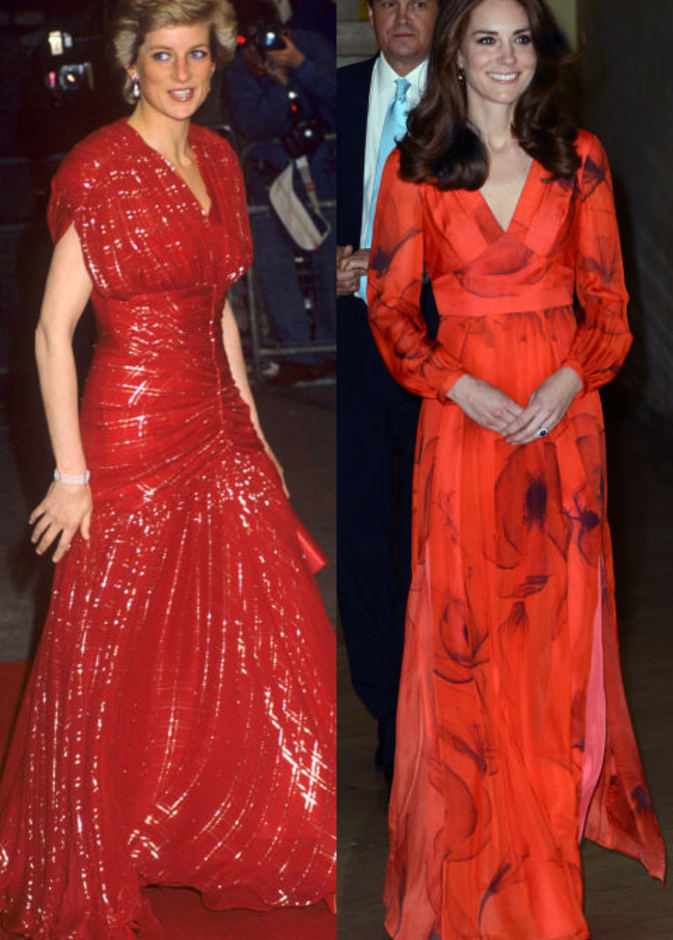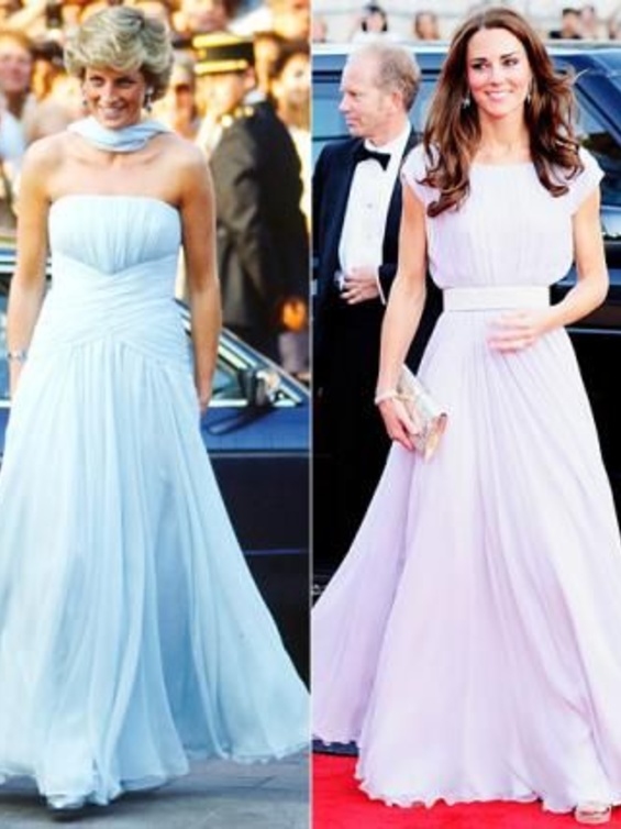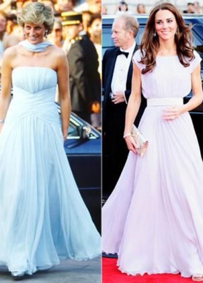 حيث كنا قد شاهدنا "كايت ميدلتون" Kate Middleton لأكث من مرة في اطلالات مشابهة لاطلالات الراحلة "ديانا" Diana وقد استوحت هذه الاطلالات منها، بحيث تنوعت بين التيورات الرسمية، وبين فساتين الكوكتيل الناعمة، كما بين فساتين السهرات الفاخرة، وحتى في الاطلالات العصرية والكاجول لاحظنا الكثير من التشابه.
