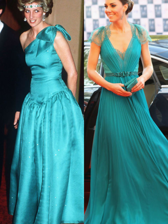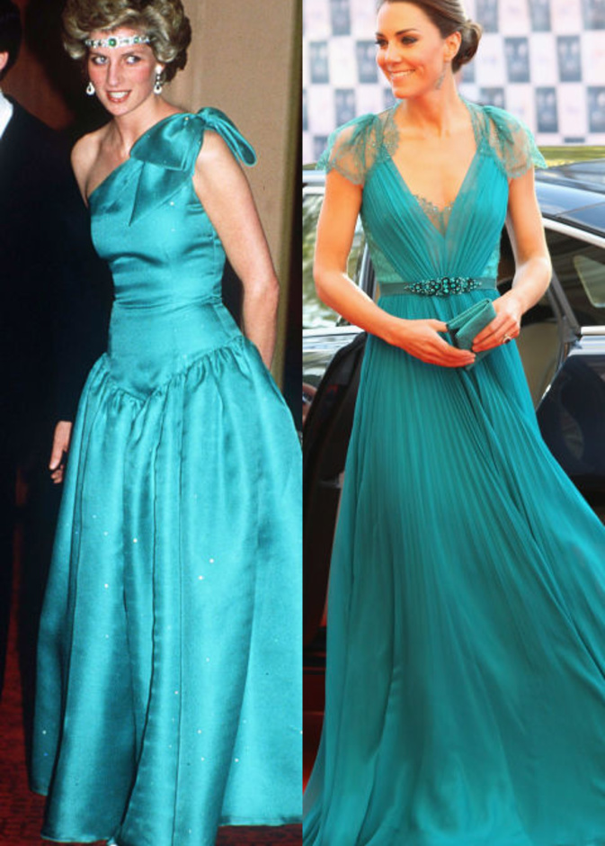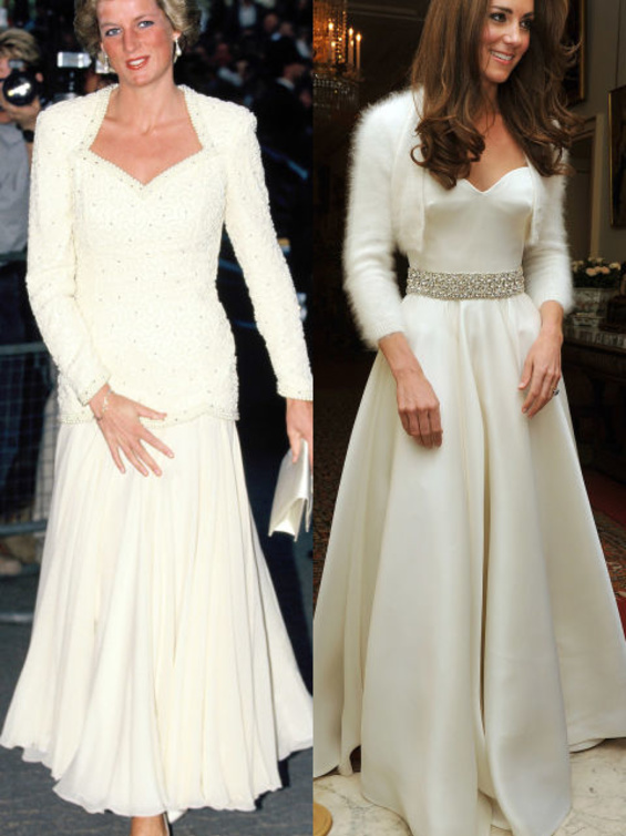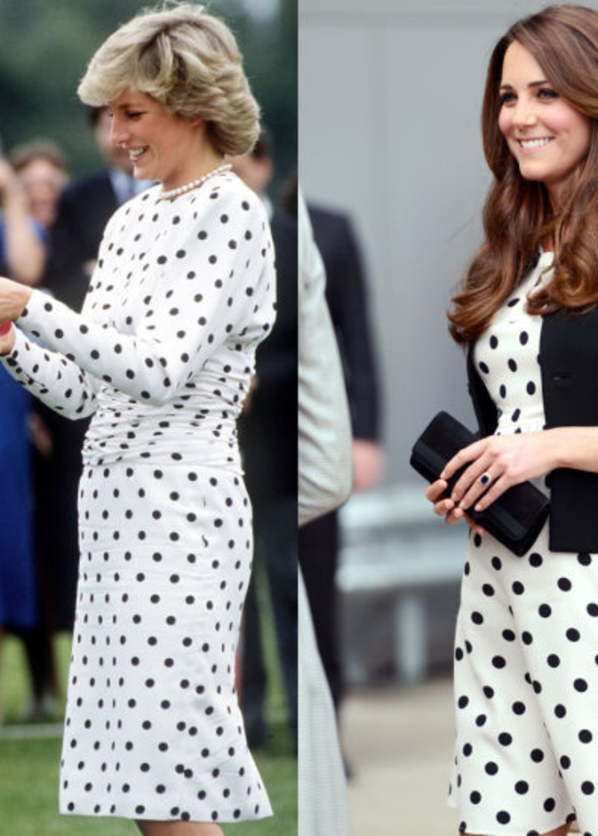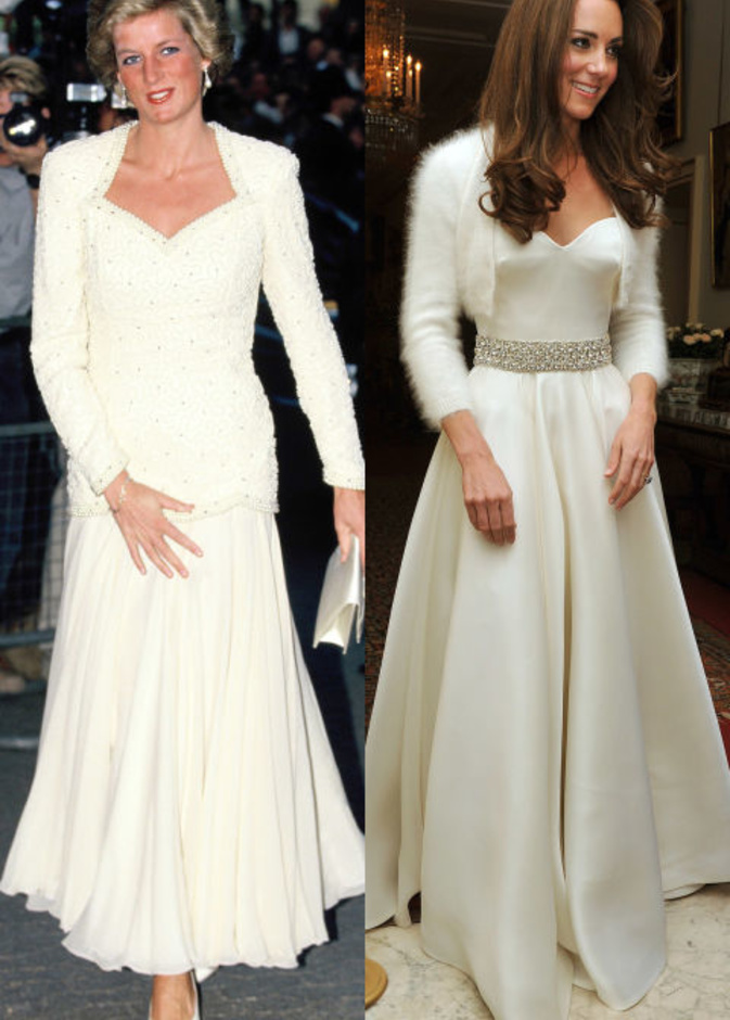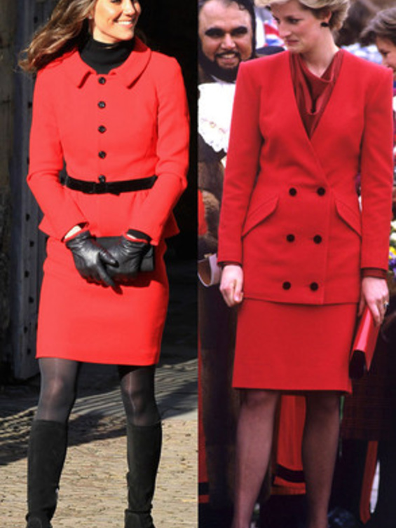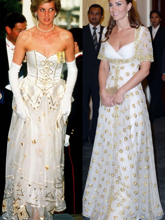 حيث كنا قد شاهدنا "كايت ميدلتون" Kate Middleton لأكث من مرة في اطلالات مشابهة لاطلالات الراحلة "ديانا" Diana وقد استوحت هذه الاطلالات منها، بحيث تنوعت بين التيورات الرسمية، وبين فساتين الكوكتيل الناعمة، كما بين فساتين السهرات الفاخرة، وحتى في الاطلالات العصرية والكاجول لاحظنا الكثير من التشابه.