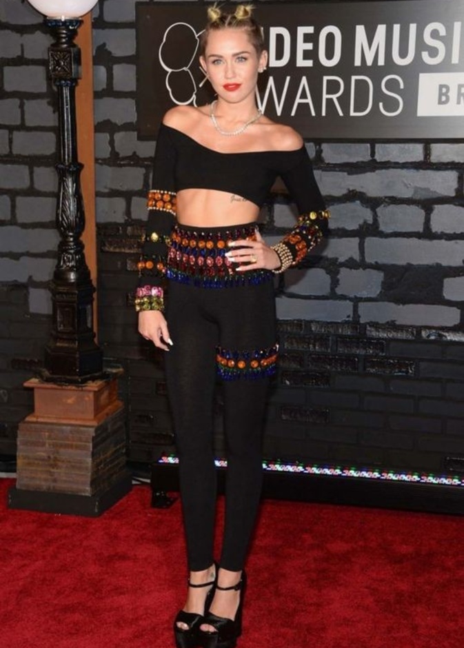 في بداياتها الفنية وعندما كانت "مايلي سايروس" Miley Cyrus في فترة طفولتها كانت إطلالاتها بريئة تشبه اطلالات أي فتاة عادية أُخرى، وحتى أننا رأيناها في فساتين سهرة جميلة على السجادة الحمراء، لكن حين بلغت سن الـ 18 انقلبت اطلالات "مايلي سايروس" Miley Cyrus رأساً على عقب وأصبحت تتسم بالجنون وكأنها أرادت منها لفت الأنظار اليها، وبالفعل فإن جميع وسائل الاعلام تتحدث عنها وعن إطلالاتها في الموضة.