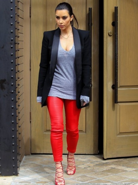 وقد لاحظنا أن كيم كارداشيان دائما ماترتدي سترة البليزر، الجاكيت او المعطف عند خروجها بشكل عام. فهي إما تتخلى عن الفستان أو التوب لتضع مكانها الجاكيت أو البليزر.