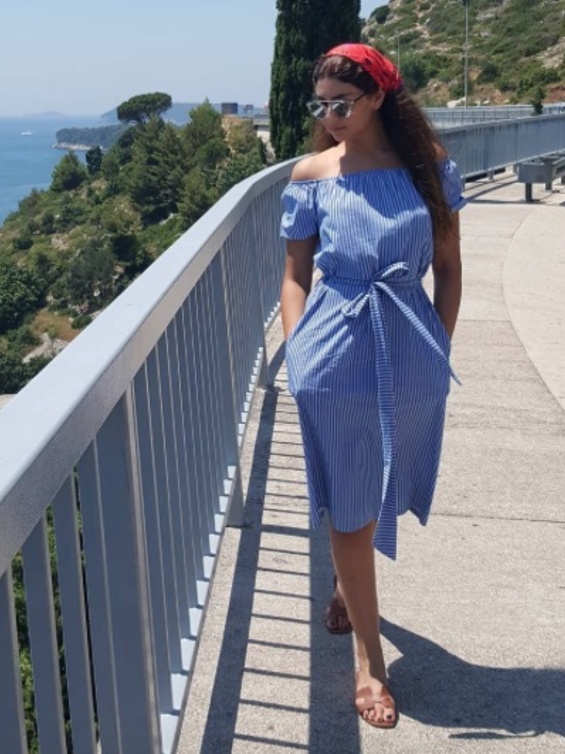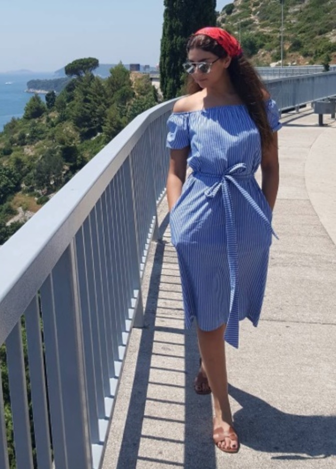 أما الاكسسوارات، فتفضلها بأسلوب ناعم جداً وبسيط مع اكمال أناقتها بأفخم تصاميم الأحذية المواكبة للموضة.