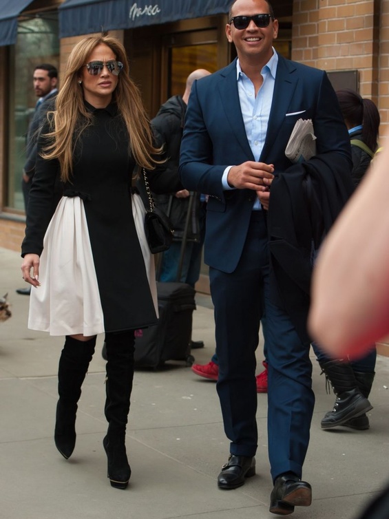 ها هي النجمة جنيفر لوبيز تتألق في الآونة الأخيرة برفقة حبيبها الجديد لاعب البيسبول الانيق أليكس رودريغيز، في شوارع نيويورك ولا تتردد بالظهور برفقته في كافة المناسبات الخاصة والعامة متألقة بأجمل التصاميم ولملابس الفاخرة. بدوره يتألق رودريغيز بأجمل التصاميم الرجالية من بدلات وملابس رياضية تظهر جسمه الممشوق والملفت للنظر.