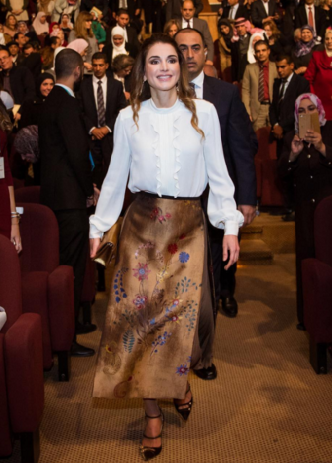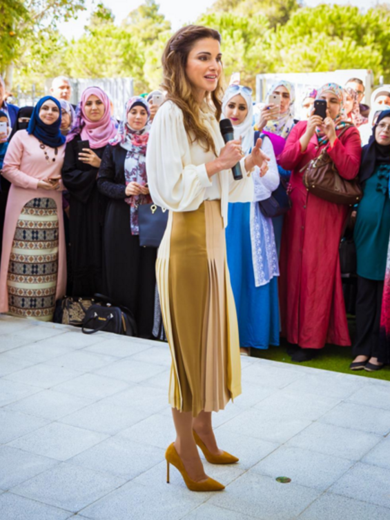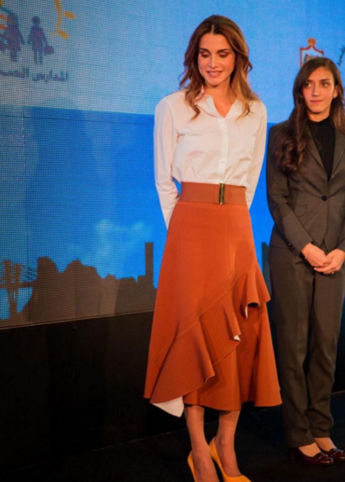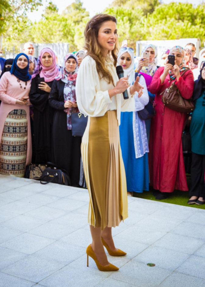 الملكة رانيا هي واحدة من أكثر النساء أناقة في العالم وتعتبر أيقونة من أيقونات الموضة في عصرنا الحالي، حيث أنها تنسق دائماً أجمل الاطلالات وأكثرها فخامة ومايميز أسلوبها في الموضة، أنه يجمع بين النمط الملكي المحافظ مع النمط العصري المواكب للموضة، واليوم اخترنا أجمل اطلالات الملكة رانيا في التنانير الميدي حتى تستوحي منها تنسيقات راقية لمناسباتك القادمة المختلفة.