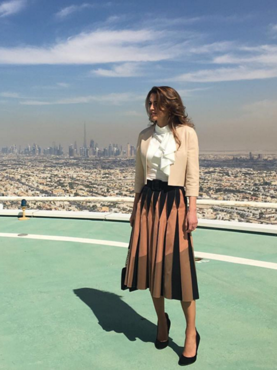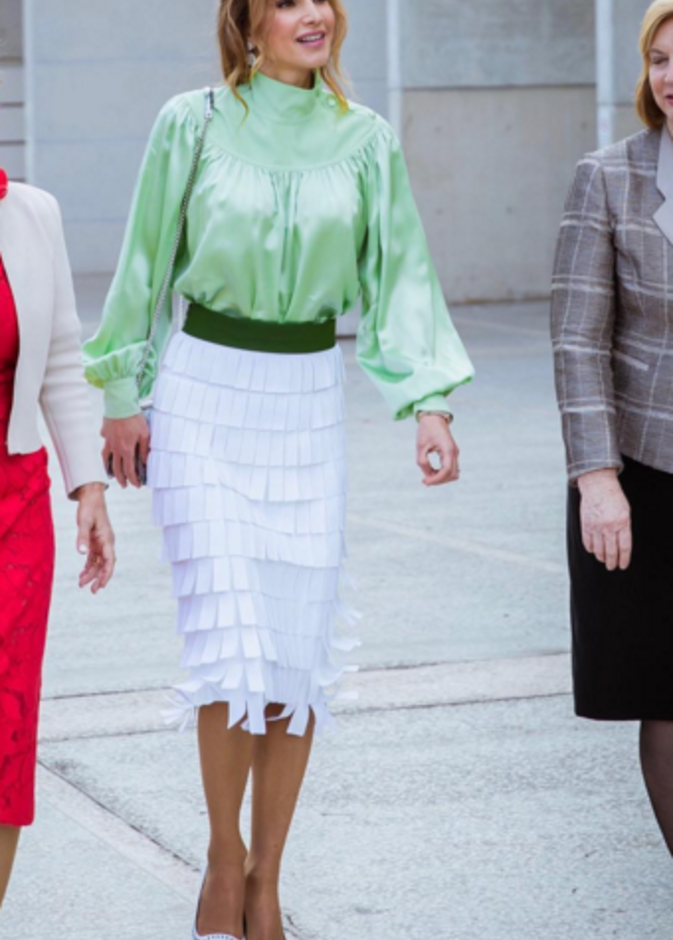 وبالرغم أن جميع التنسيقات التي تعتمدها الملكة رانيا رائعة ومميزة غير أن اطلالاتها في التنانير الميدي هي من الأجمل، ولهذا وقع اختيارنا عليها اليوم، وبإمكانك أن تستوحي من خيارات الملكة رانيا الراقية أجمل الاطلالات كأن تنسقي مثلاً تنورة ميدي بتصميم عصري مزين بالشراريب مع قميص ناعم باللون الأبيض، أو أن تختاري تنورة ميدي ناعمة من قماش الحرير المنسدل وتنسقيها مع قميص ذي تصميم لافت، ولاتنسى أبداً كما تفعل الملكة رانيا أن تختاري أجمل الاكسسوارت من حقائب اليد الفاخرة والأحذية المميزة وتنسقيها مع اطلالاتك في التنانير الميدي.